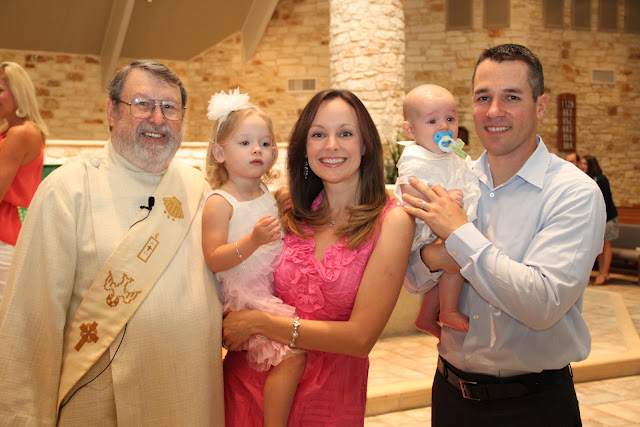 We started the morning by giving Presley a special gift to wear at her brother's baptism. She got her very first charm bracelet, from James Avery, with a little cross charm so she would always remember this special day. She was so excited to have a bracelet all her own!